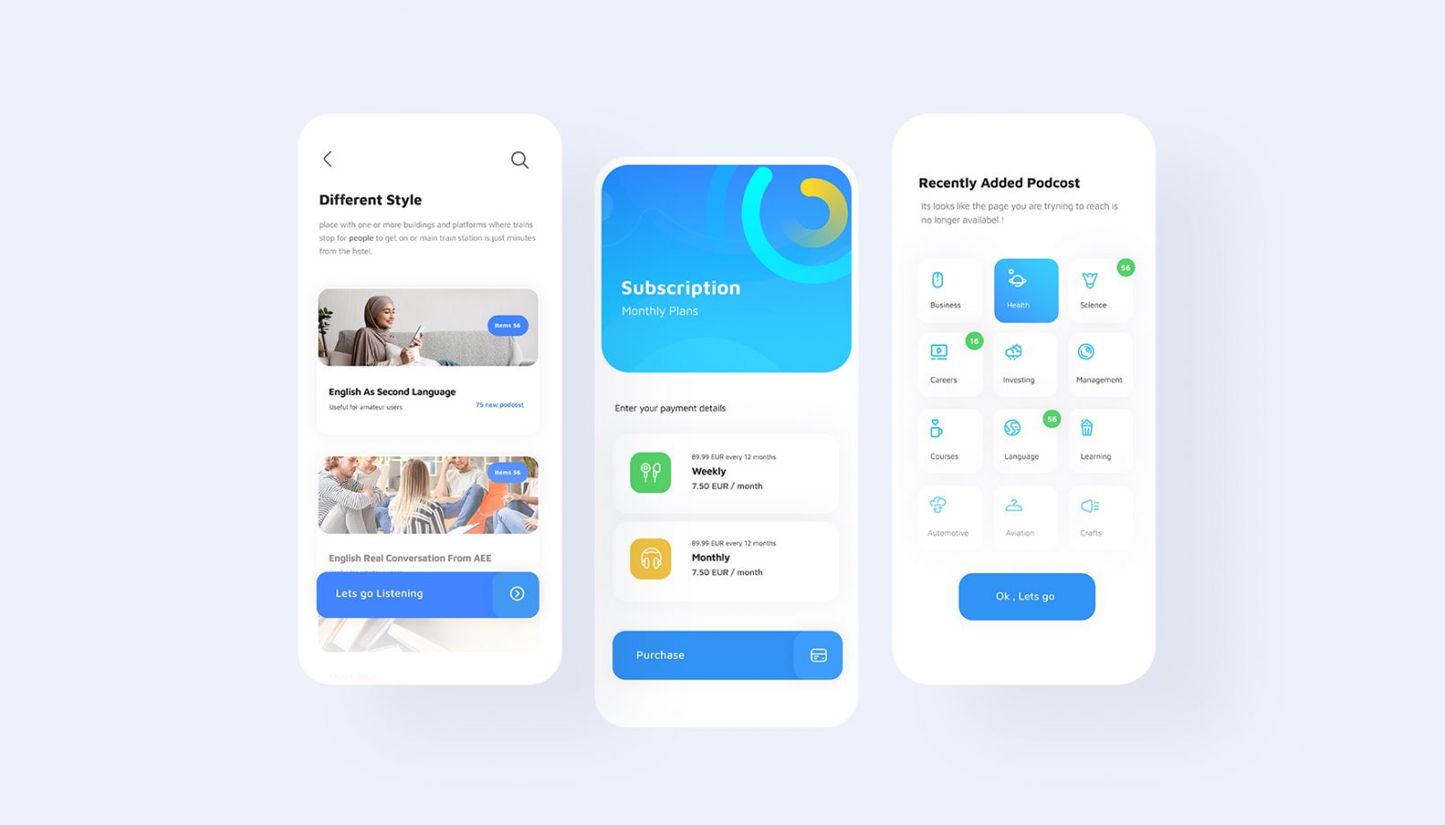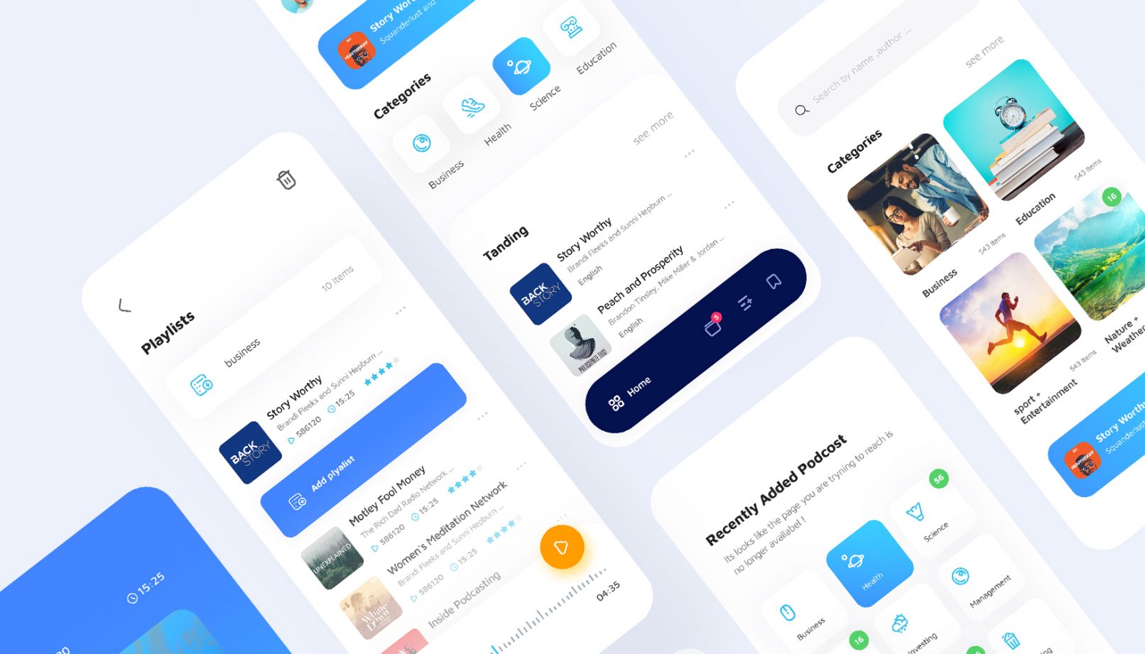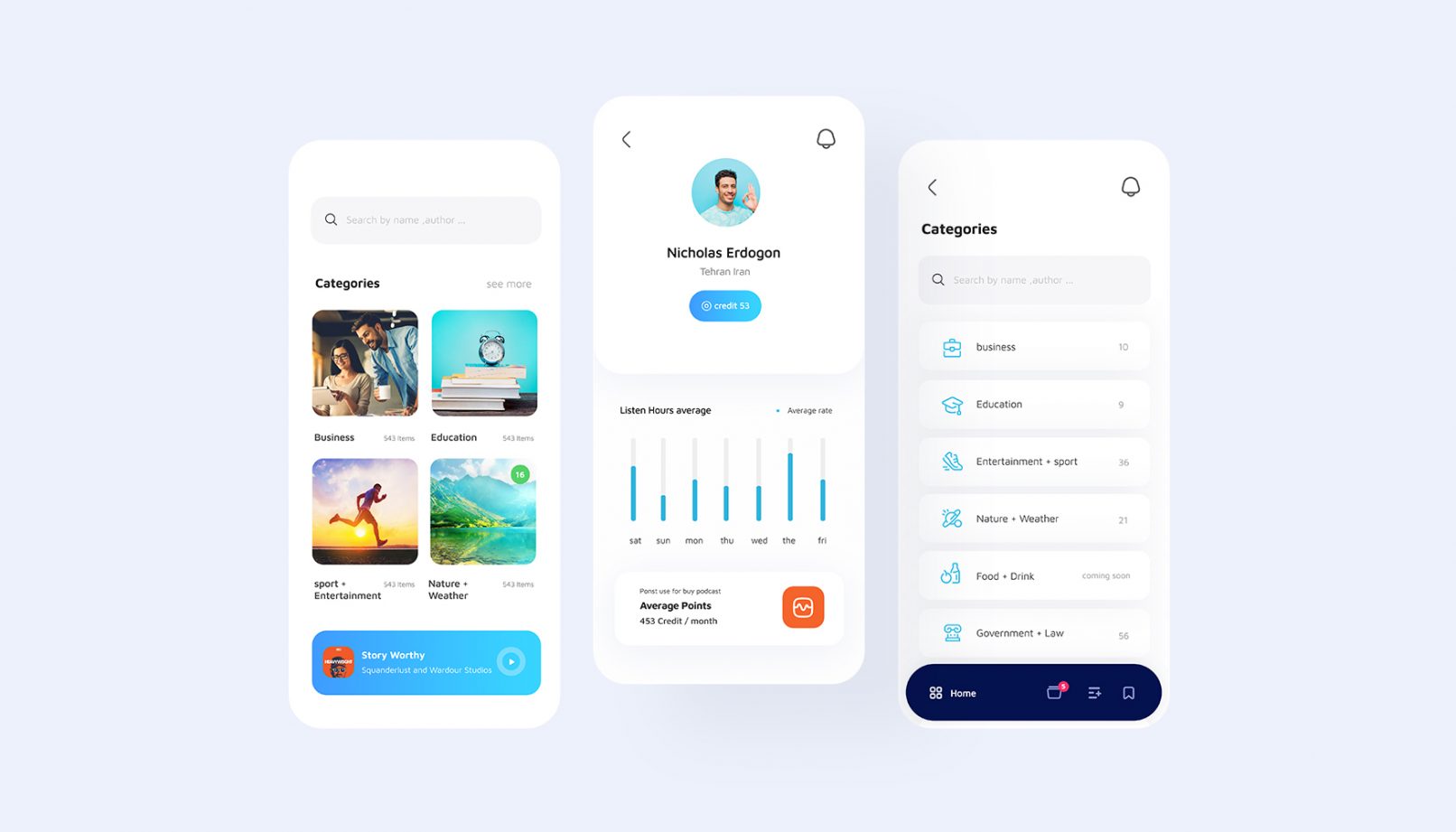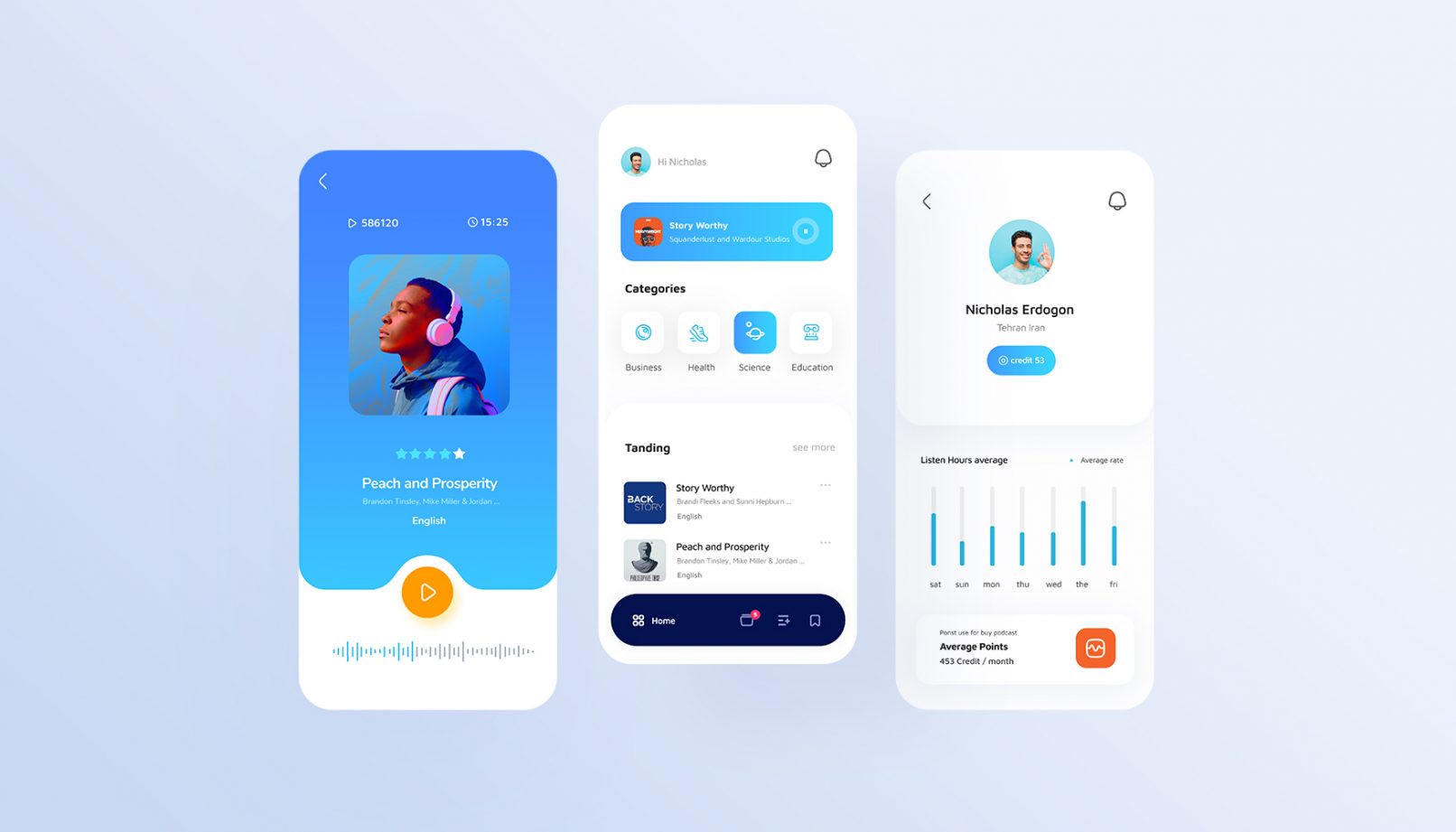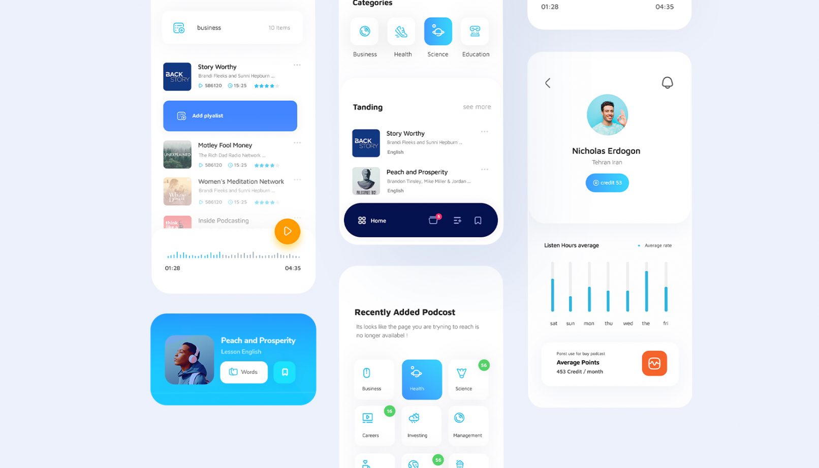در طراحی رابط کاربری اپلیکیشن آواکست به دلیل حجم زیاد اطلاعات دسترسی راحت به دسته های مختلف پادکست های آموزشی استفاده راحت از امکانات در نظر گرفته شده ، پلیر و لایت باکس کلمات و همچنین ایجاد یک فضای بصری مدرن و امروزی در اولویت طراحی تجربه کاربری این پروژه قرار داشت در این چیدمان مطمئنا هماهنگی و استفاده از المان های هویت بصری در دستور کار قرار داشته و چالش کلی دسترسی راحت به پادکست و امکانات گوش دادن به آن به بهترین شکل ممکن است .