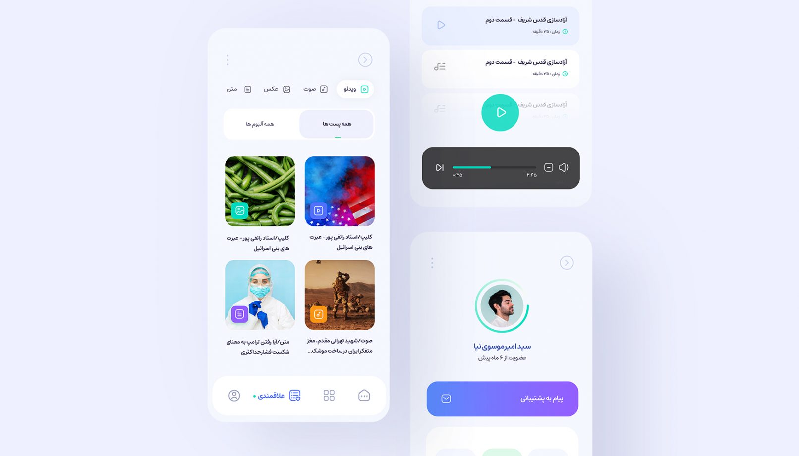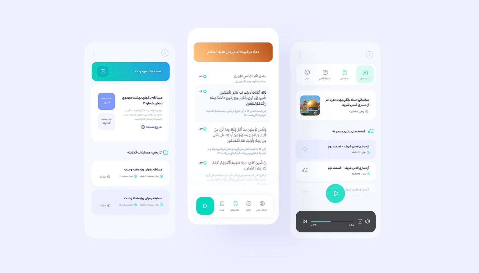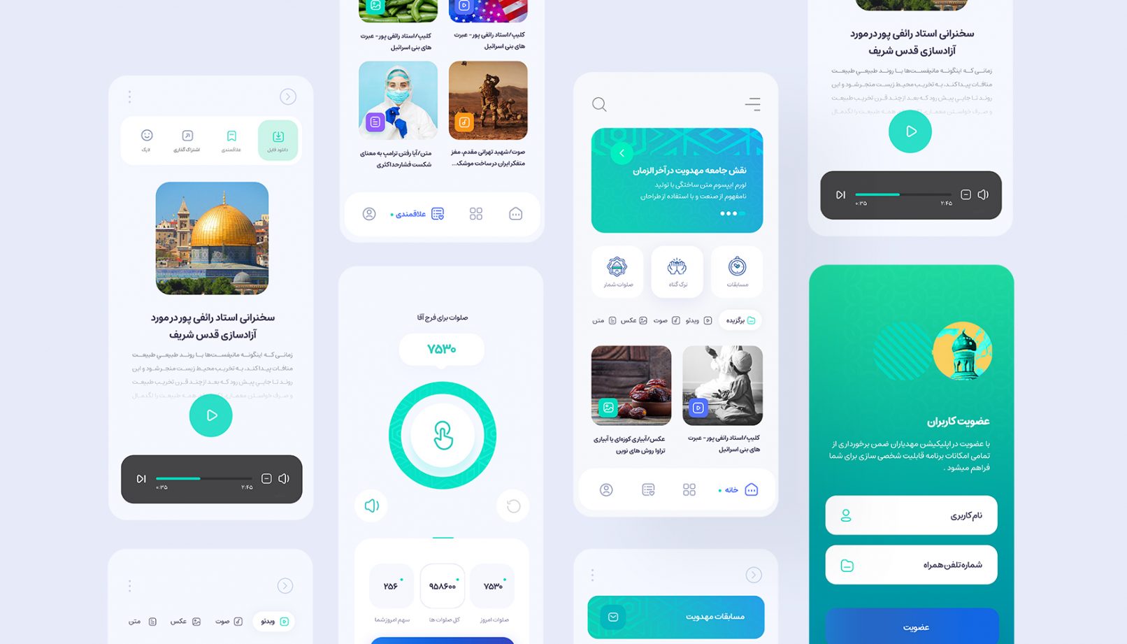 اپلیکیشن مهدیاران یکی از بزرگترین و مهمترین پروژه های حوزه مهدویت است که افراد زیادی در توسعه و طراحی بخش های مختلف آن فعالیت داشتند .چالش همیشگی طراحی بصری اپلیکیشن های مذهبی ، ظاهر کلیشه ای و خسته کننده قدیمی و سنتی با استفاده از همان زمینه ها و المان های تذهیب و نقش و نگارهای اسلامی و استفاده از رنگ های خاکی است .