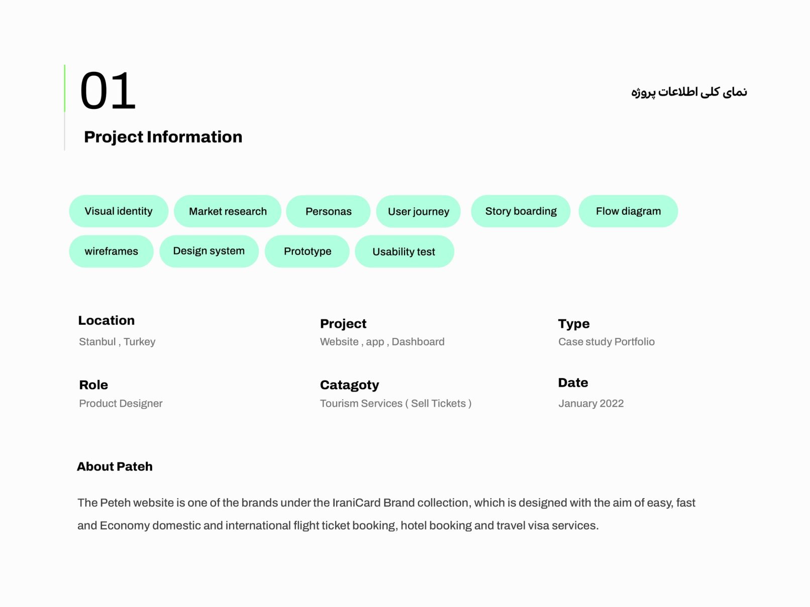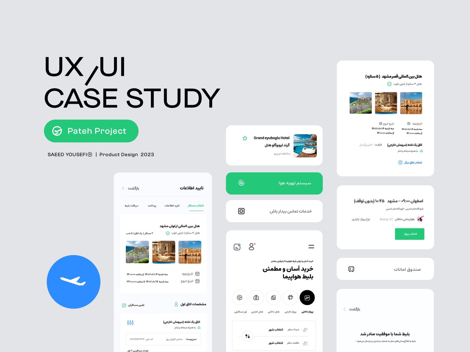 وبسایت پته یکی از برندهای زیر مجموعه ایرانیکارت است که با هدف رزور آسان، سریع و ارزان بلیت پرواز های داخلی و خارجی، رزرو هتل و خدمات ویزای مسافرتی طراحی شده است. در این بخش طراحی رابط کاربری وبسایت آژانس هواپیمایی پته مورد بررسی قرار میگرید . کاربران بصورت آنلاین و بدون مراجعه حضوری میتوانند از خدمات این سایت بهره مند شوند.هم چنین پته به عنوان جامع‌ ترین سیستم رزرواسیون آنلاین در تمامی شهر های ایران که دارای فرودگاه هستند فعال است. خرید آسان بلیت چشم انداز پته است که بعنوان یکی از مهمترین رفرنس های پروژه طراحی رابط کاربری مورد توجه قرار گرفته شده است .