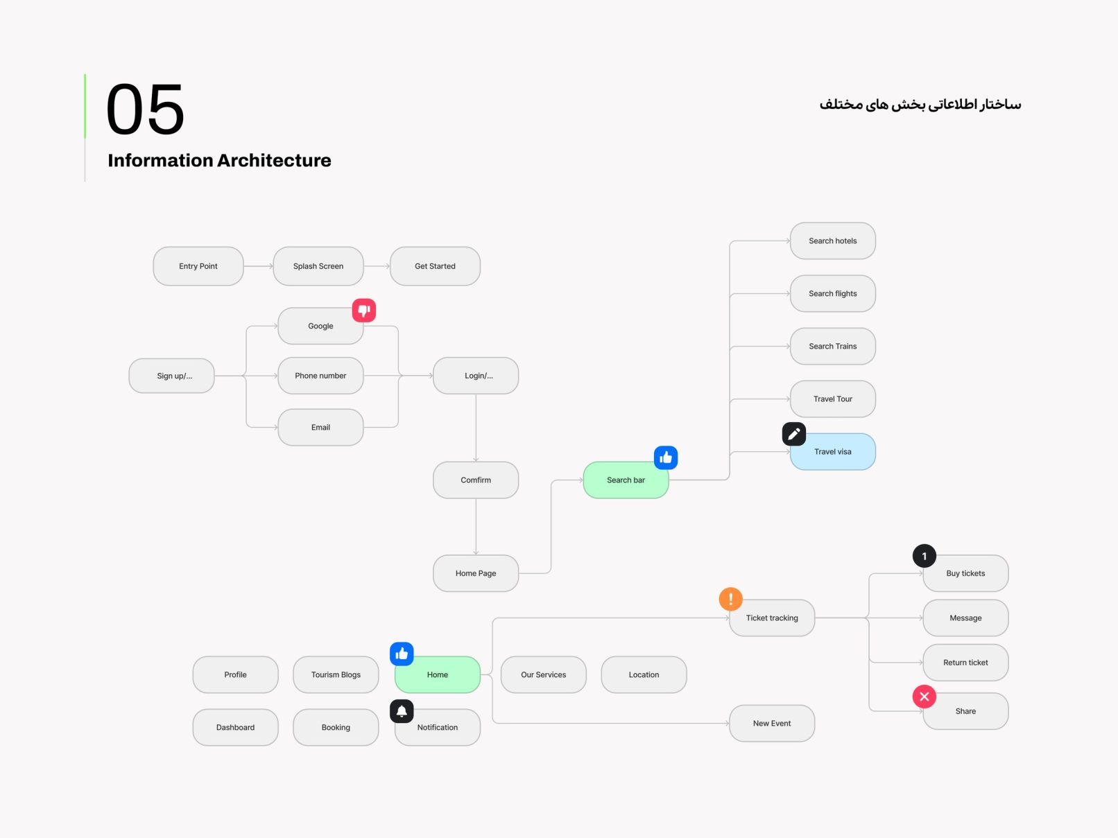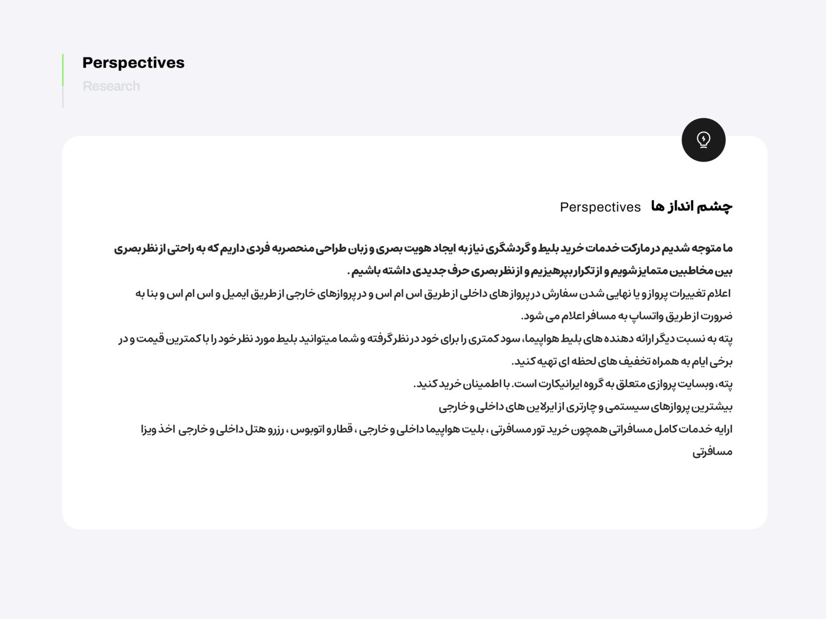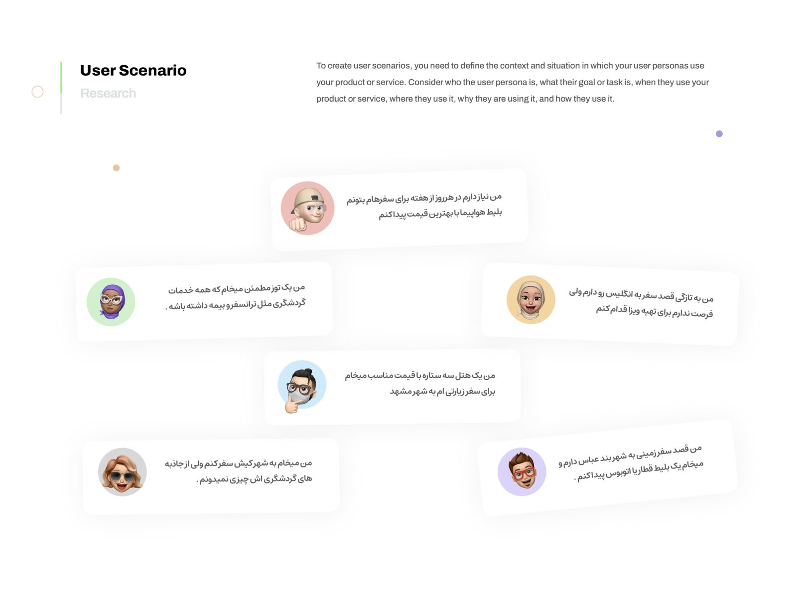 ما در فرآنید تحقیق متوجه شدیم که اکثر مردم فکر میکنند خرید آنلاین بلیت زمان بر و سخت است ، گزینه های محدود برای خرید بلیت به مقاصد دلخواه و در دسترس نبودن، مشکل در روش های پرداخت، مشکل در استرداد بلیت از دیگه چالش های این فرآیند مطرح میشود . همچنین وجود فیچر های مختلف در بخشهای مختلف وبسایت و اپلیکیشن و نیاز به چیدمان بهینه و دردسترس کاربر از دیگر چالش های پیش رو بود .