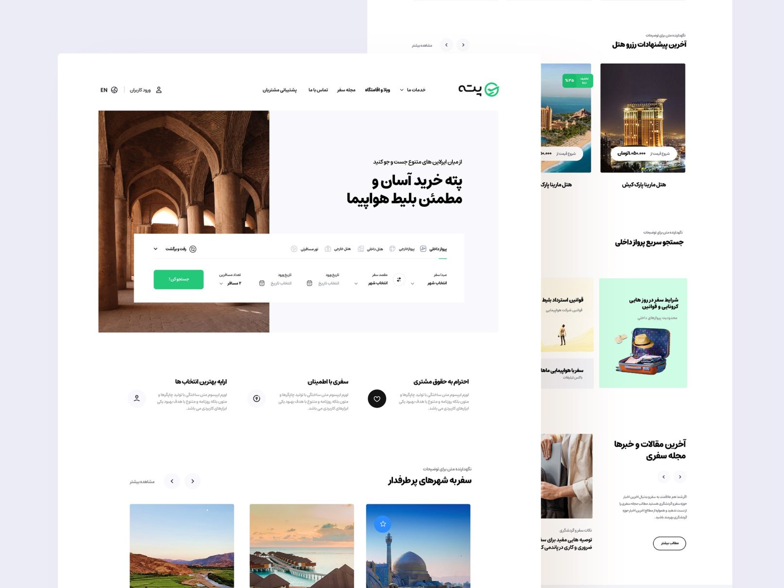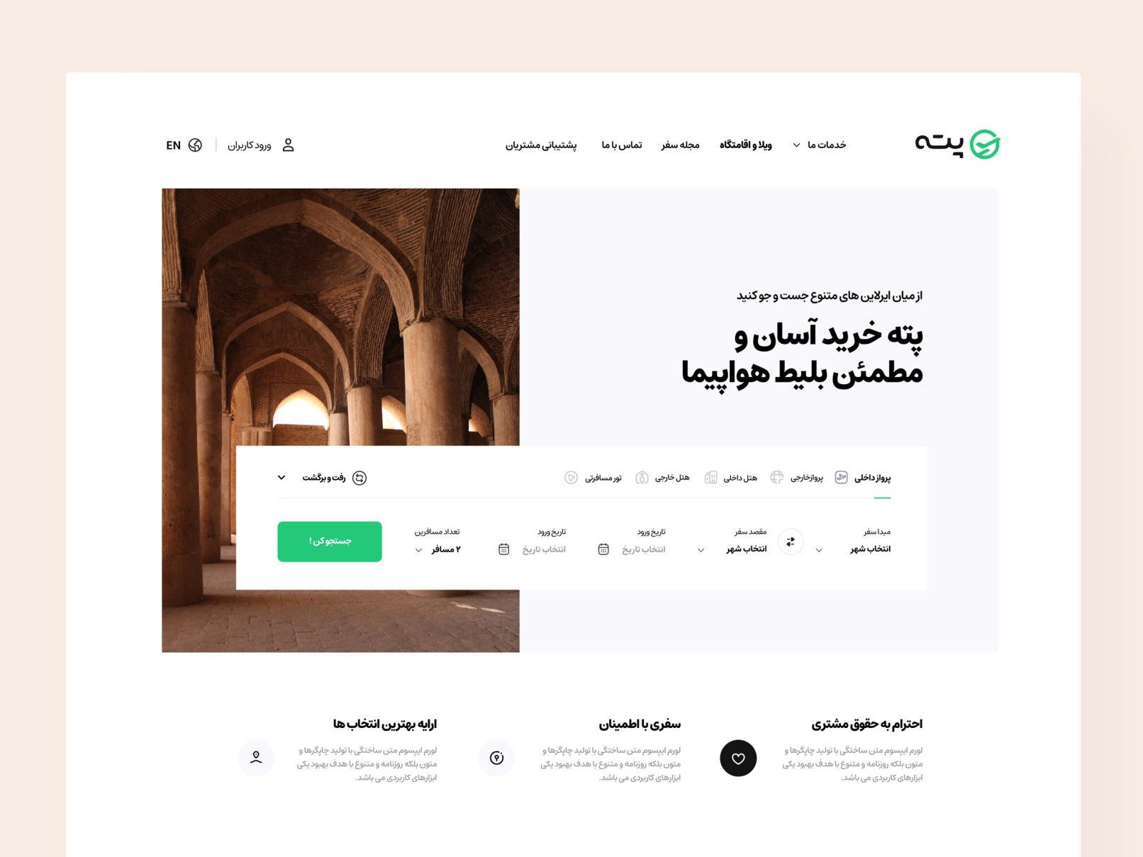 رابط کاربری وبسایت آژانس هواپیمایی پته
